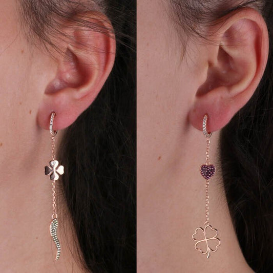 Orecchini cuore pendente zirconi fucsia e arancioni