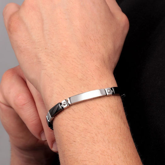 Bracciale Sector targhetta e ceramica nera