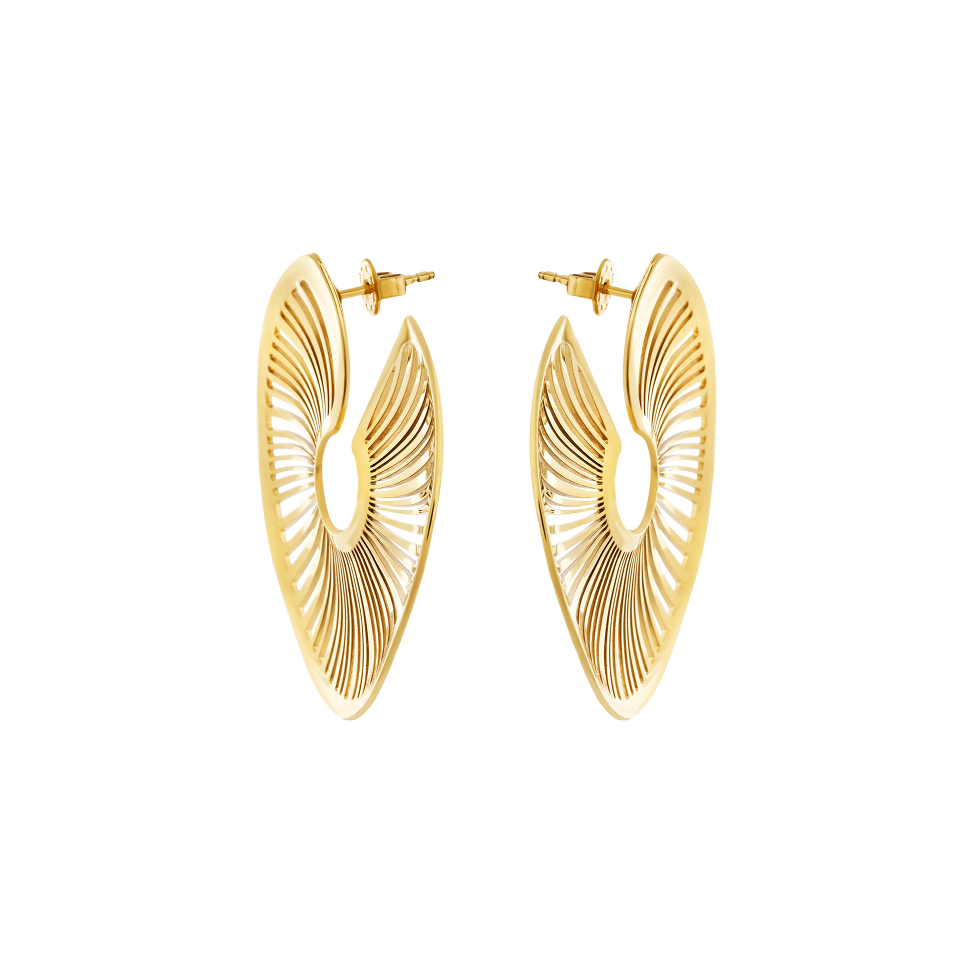 Gli orecchini B Whisper si distinguono per il loro design in acciaio lucido gold laserato a spirale, una lavorazione che crea movimento e leggerezza visiva pur mantenendo un’estetica moderna e decisa. La forma sinuosa degli orecchini incornicia il viso catturando la luce da ogni angolazione e trasformando il gioiello in un dettaglio dinamico e sofisticato, capace di dare personalità anche ai look più essenziali. Grazie alla loro leggerezza, sono perfetti per essere indossati tutto il giorno.