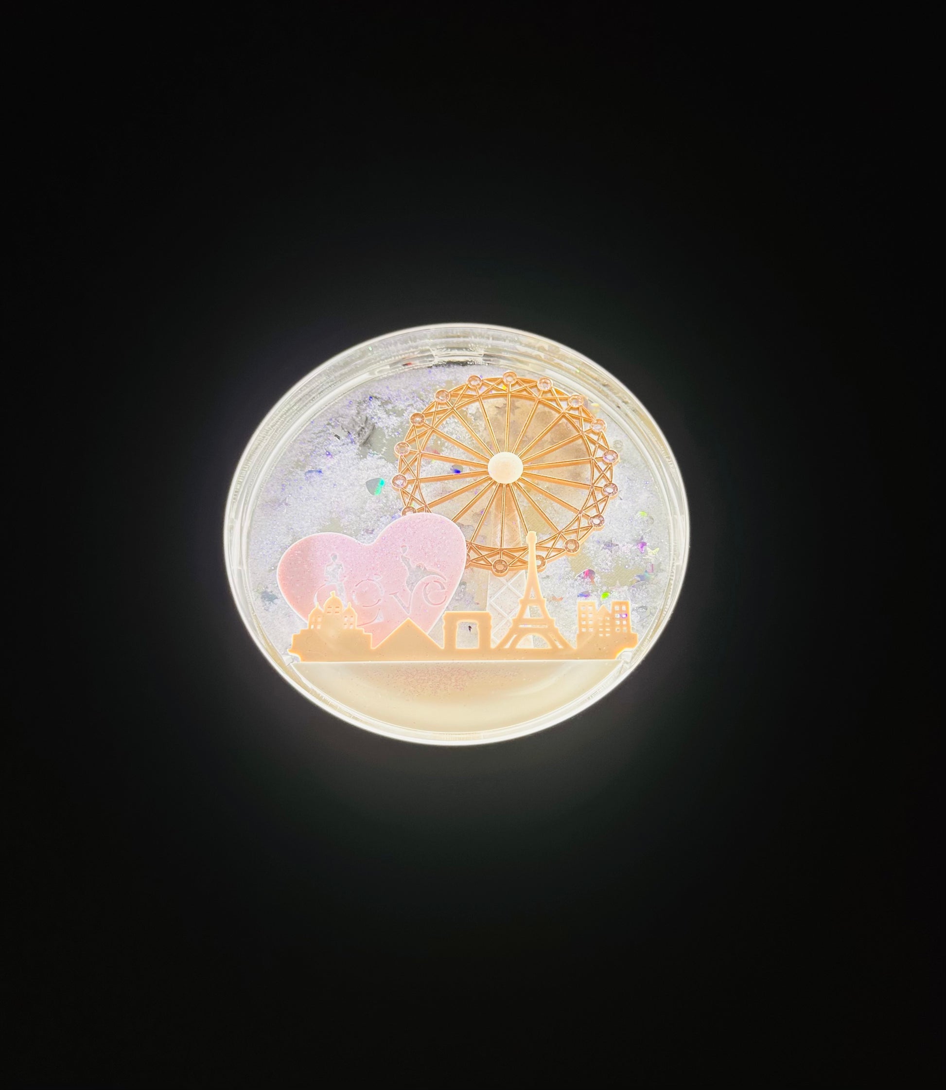 Box La Vie en Blanc Luce Led Touch: Cofanetto tondo con luce led touch ed effetto palla di neve glitterata. Colore bianco. Batterie e Shopper incluse.